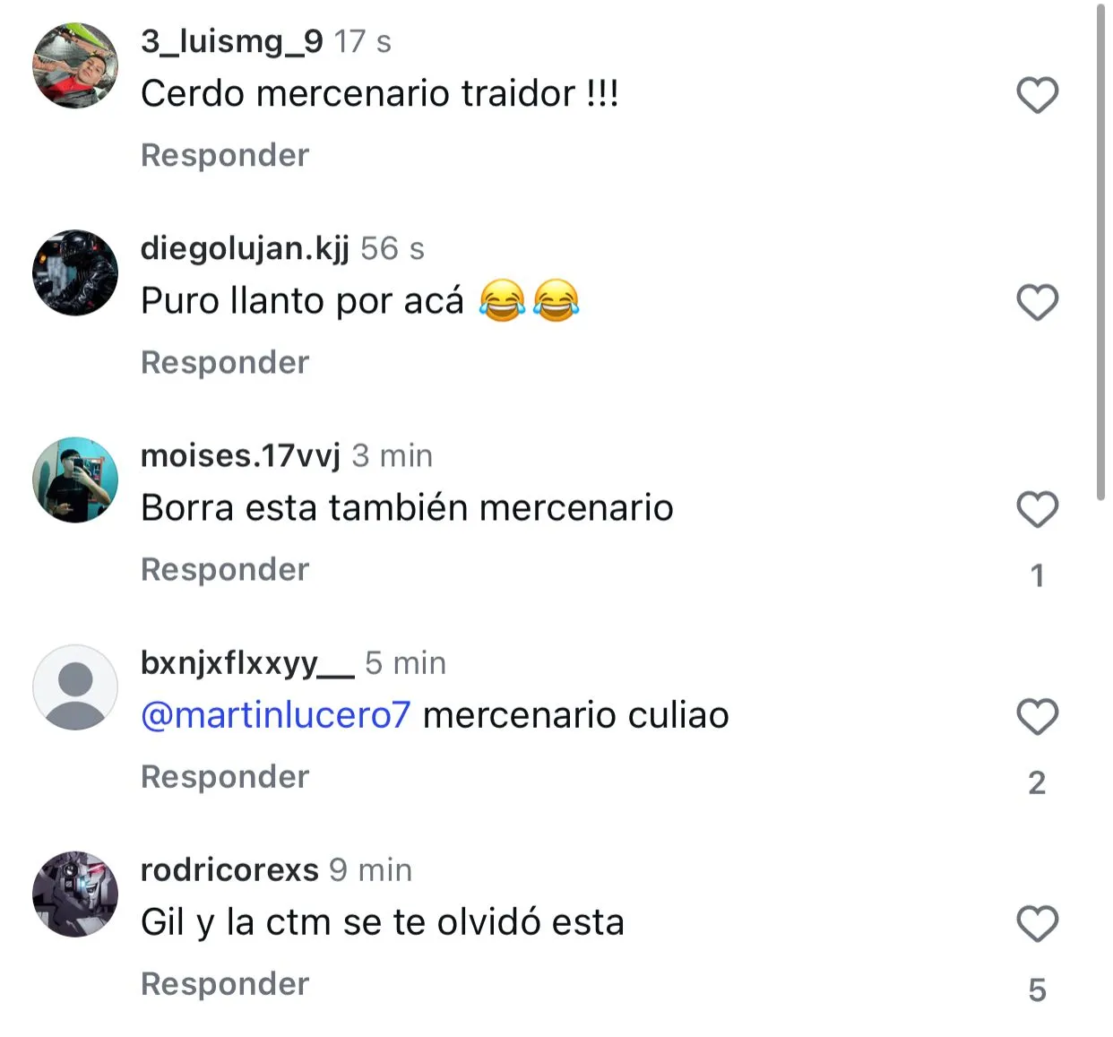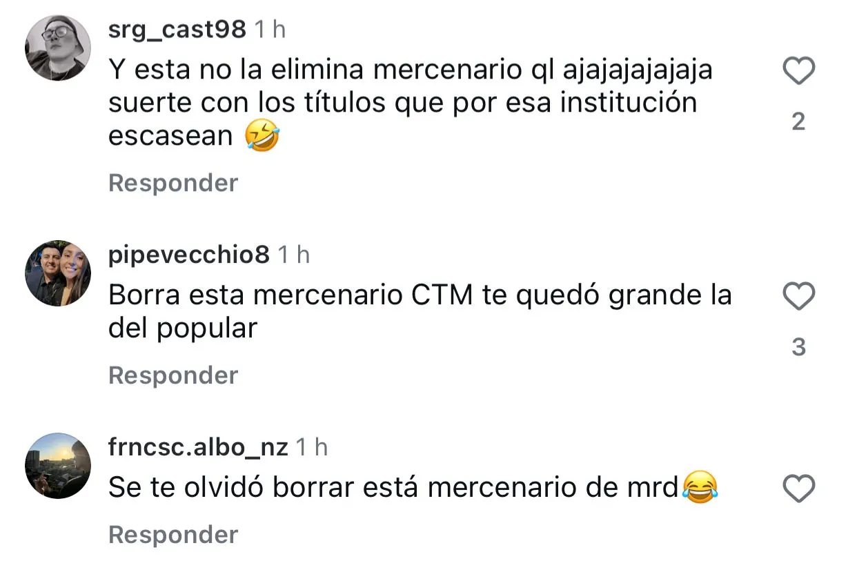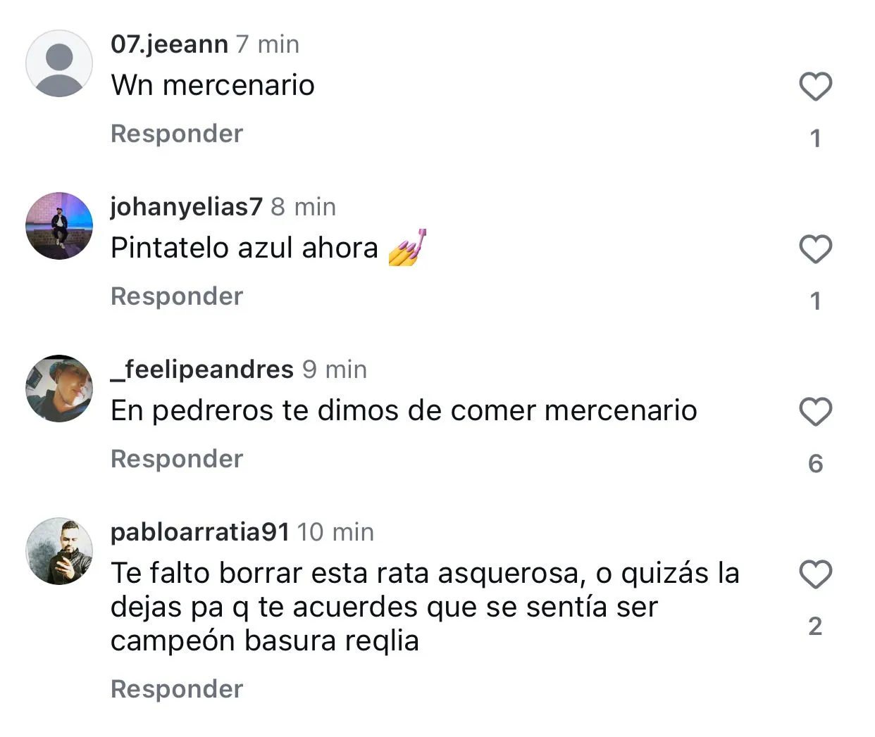 “Borra esta mercenario CTM”, “Se te olvidó borrar esta”, “Te haremos la vida imposible”, “Se te viene el infierno”, fueron algunos de los comentarios que inundaron su cuenta.