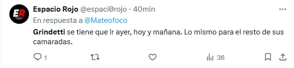 “Papelon el de Grindetti. No poner seguridad buscando incidentes. Se le fue la mano y casi genera una masacre. Debería estar preso”, añadió otro internauta.