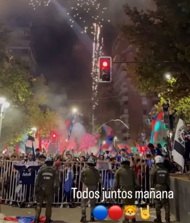 “Todos juntos mañana”, escribió el defensor argentino nacionalizado chileno, acompañado de emojis representativos del Romántico Viajero.