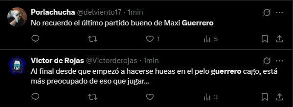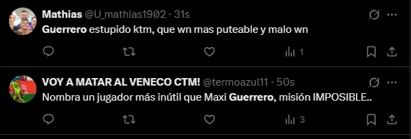 Los comentarios de los hinchas contra Maximiliano Guerrero