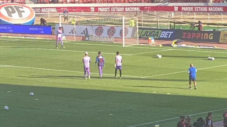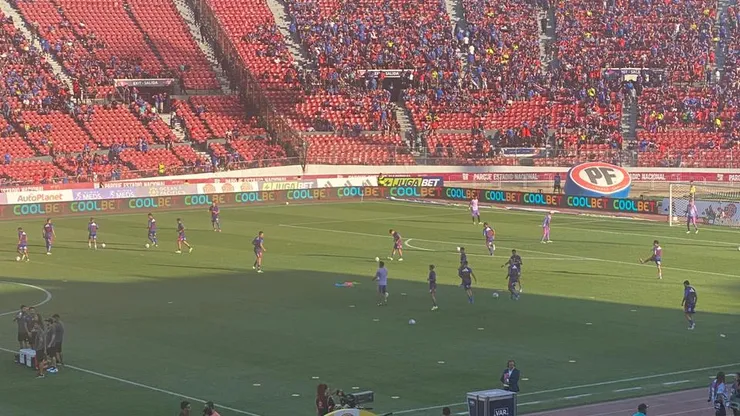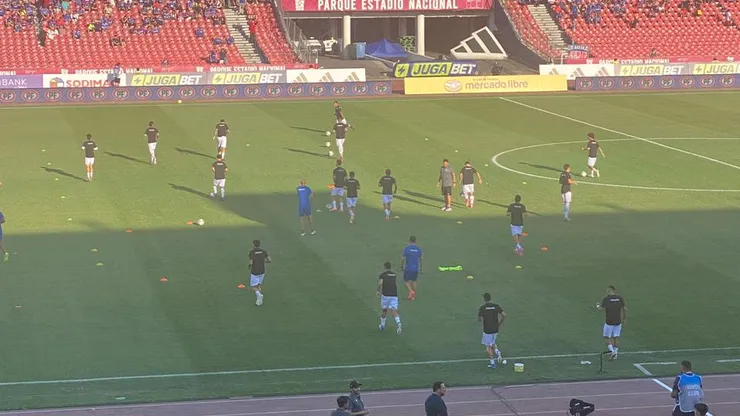 Todos los jugadores de Audax Italiano están en la cancha del Estadio Nacional realizando el trabajo de precompetencia en la antesala del partido ante Universidad de Chile.