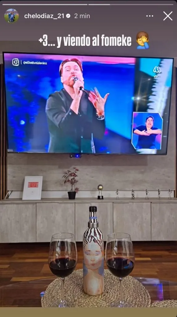 A través de sus historias de Instagram, el “Chelo” publicó una historia festejando el triunfo azul pero lamentando la pobre rutina del humorista venezolano: “+3… y viendo al fomeke”.
