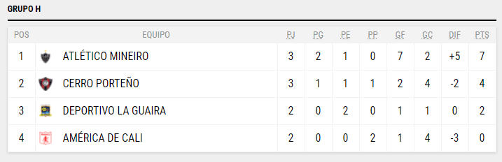 Atlético Mineiro mantiene su invicto en la Copa Libertadores quedándose como único líder de la competencia, donde suma un total de siete puntos en tres partidos disputados, acumulando un registro de dos triunfos y un empate.