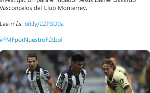 “La Comisión Disciplinaria informa, que con fundamento en lo dispuesto por el artículo 74, 84 y 85 del Reglamento de Sanciones, determinó abrir un Procedimiento de Investigación de Oficio por los festejos inapropiados del Jugador Jesús Daniel Gallardo Vasconcelos, al término del partido disputado el pasado 29 de Diciembre de 2019, correspondiente al partido de la Final de Vuelta de Torneo Apertura 2019 de LIGA MX, entre los Clubes América vs. Rayados de Monterrey.