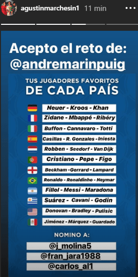 Uno de ellos es Agustín Marchesín, quien se encuentra en Portugal, y se presta a los juegos que impone la red social Instagram.