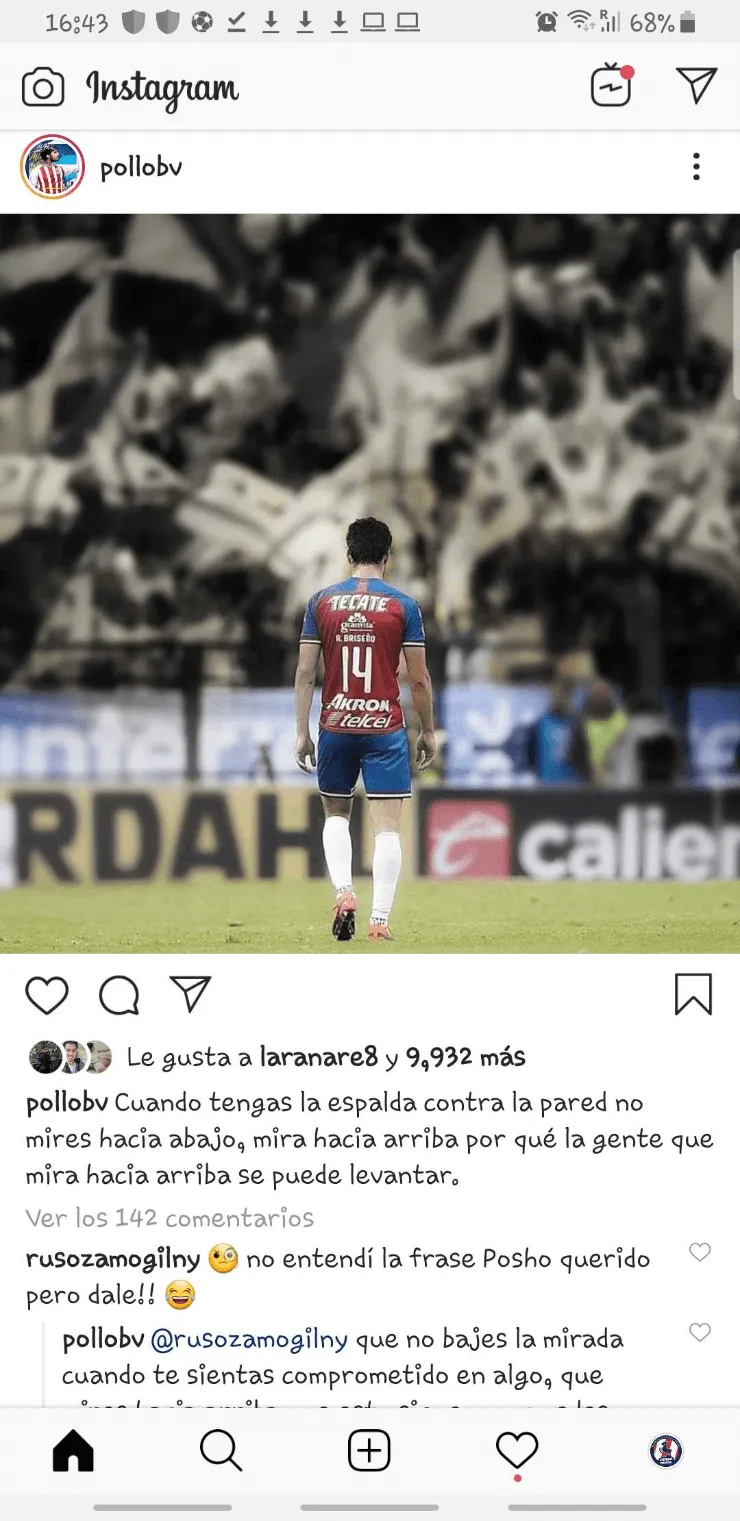 El zaguero del Guadalajara publicó un mensaje esperanzador en Instagram y Diego Zamogilny le salió al cruce rápidamente a modo de broma.
