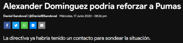 Sin embargo, en Pumas mirande reojo a otro guardametas en caso de que la llegada del arquero uruguayo no prospere: Alexander Domínguez. Según informó Multimedios Deportes, la directiva de laUNAM ya habría iniciado contactos con Vélez, club que es dueño de la ficha del ecuatoriano.