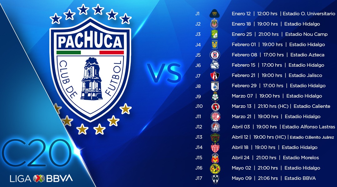 Pachuca tendrá un inicio muy complicado en las dos primeras jornadas, donde deberá verse las caras con dos equipos que siempre son candidatos a hacerse con el torneo: su debut será ante América (27 de junio/J1) y su primera incursión fuera de casa será en Tigres (1 de agosto/J2).