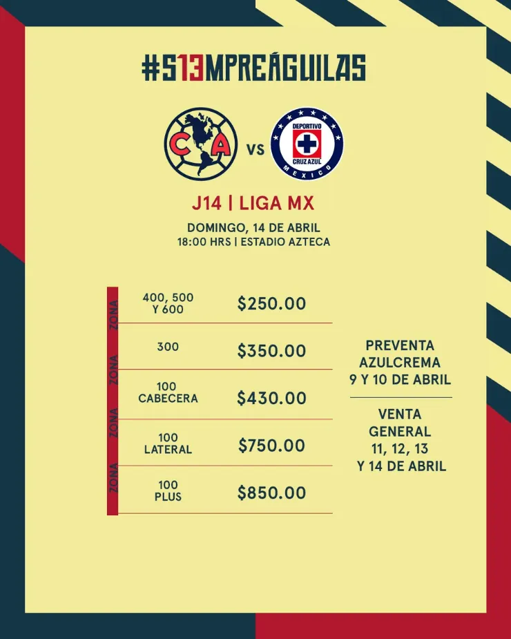Como parte de la promoción de la venta de boletos para el duelo, el conjunto águila invita así entonces o así a su afición a que adquiera entradas para el evento, mismas que serán puestas a la venta para el público en general a partir de mañana.