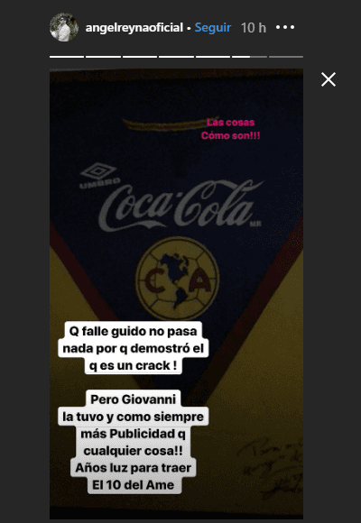 “Que falle Guido, no pasa nada, porque demostró que es un crack. Pero Giovani la tuvo y, como siempre, más publicidad que otra cosa. Años luz para traer el 10 del América”, expresó en su cuenta de Instagram.