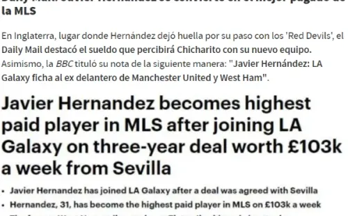 Daily Mail de Inglaterra: “Javier Hernández se convierteen el mejor pago de la MLS”.