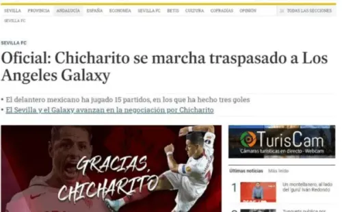 Diario de Sevilla: “Chicharito se marcha traspasado a Los Angeles Galaxy”.
