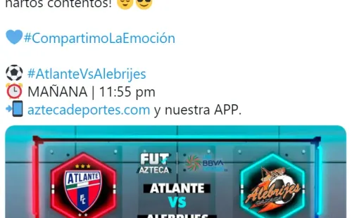 + Sigue la transmisión en vivo de Atlante vs. Alebrijes de Oaxacavía TV Azteca: