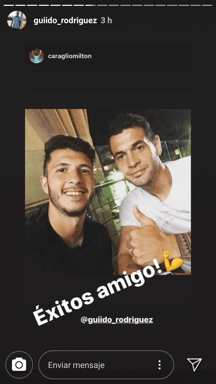 En Tijuana se hicieron buenos amigos los argentinos Guido Rodríguez y Milton Caraglio, por lo cual el delantero de Cruz Azul no se olvidó del contención que pasó de América a Betis esta semana.