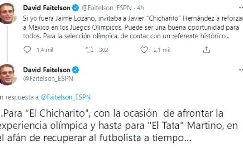 Quien se sumó al debate fue el periodista de ESPN, David Faitelson, quien sorprendió al afirmar que el entrenador del Tri Olímpico debería considerar a Javier “Chicharito” Hernández para la expedición en tierras japonesas.