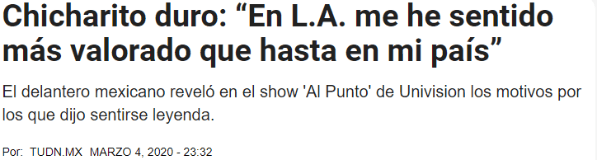 “Tengo un hijo, una familia. También en lo futbolístico: no estaba dispuesto a sacrificar o pagar el precio por cosas que estaban fuera de mi alcance en Europa”, agregóChicharito.