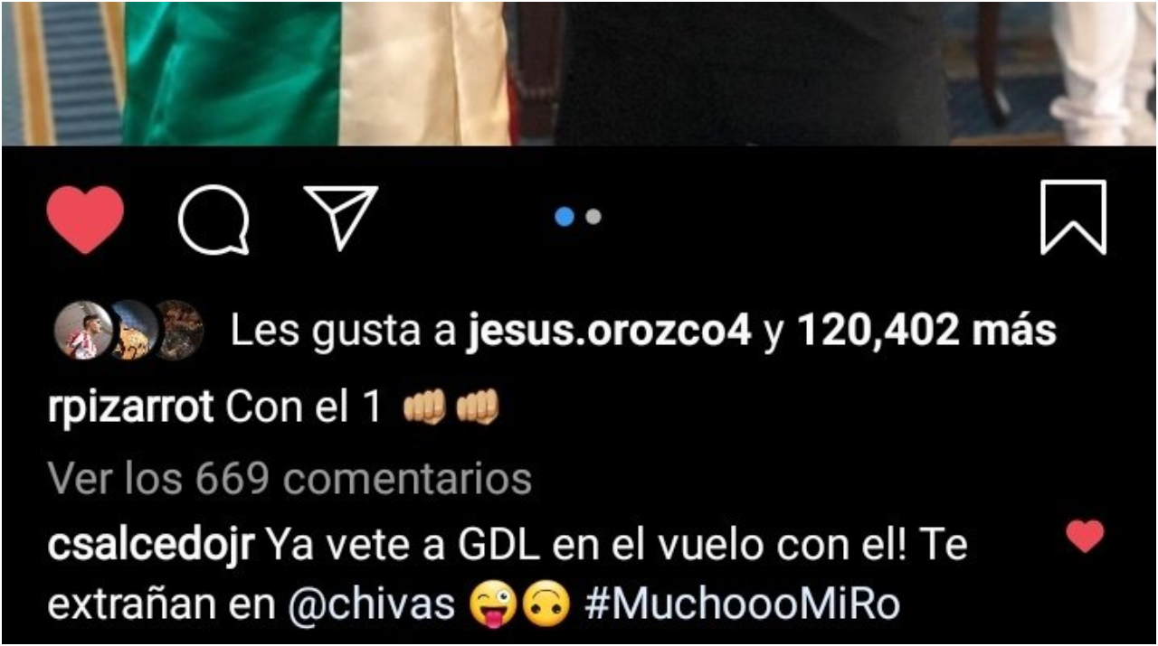 “Ya vete a Guadalajara en vuelo con él (Saúl Álvarez), te extrañan en Chivas. Mucho, mi Ro”, comentó el Titán de Tigres en la publicación de Pizarro. Sin dudas que Salcedo no puede pedir que juegue en los Felinos, aunque es llamativo que lo haya pedido paraque regrese Chivas.