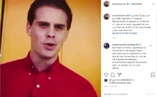 “El jueves 30 de julio de 1998 ingresé a TV Azteca. Básicamente he pasado la mitad de mi vida en el canal. Agradecido con Luis Manuel Jaramillo, Enrique Valdés y por supuesto con José Ramón Fernández“, escribió en sus redes sociales Christian Martinoli.