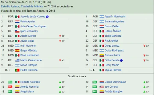 Aquel encuentro se disputó el 16 de diciembre de 2018en el Estadio Azteca y fue victoria de América por 4 a 2.