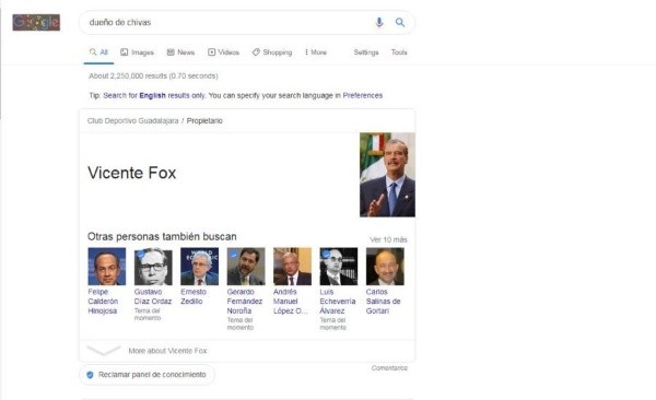 Sin embargo, si uno ingresa en Google y escribe ‘dueño de Chivas’ aparece el nombre de Vicente Fox, el expresidente de México. ¿Verdad o broma?