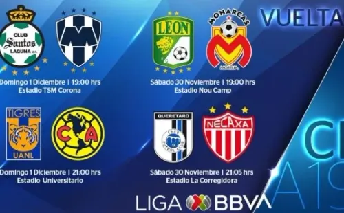 –VUELTA Querétaro – Necaxa: sábado 30 de noviembre, 21:05 horas.