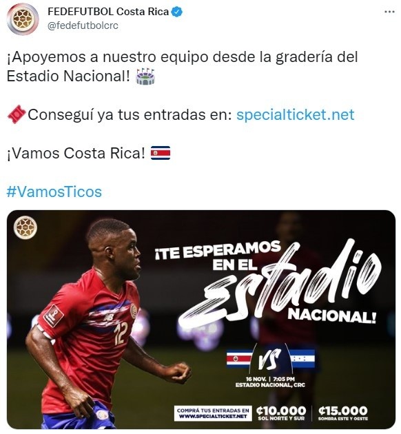 El partidoCosta Rica vs. Hondurasse llevará a cabo HOY,martes 16 de noviembre, en el Estadio Nacional de San Josépor laFecha 8delasEliminatorias CONCACAF.