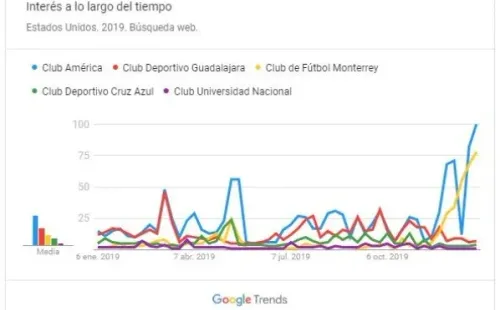 Chivas, por ejemplo, tuvo un bajo número de búsquedas durante el 2019, un año en el que no logró clasificar a ninguna de las Liguillas de los dos torneos disputados. Por el caso contrario, Monterrey demostró un gran aumento, seguramente debido a su título de Concachampions y, más que nada, su participación en el Mundial de Clubes.