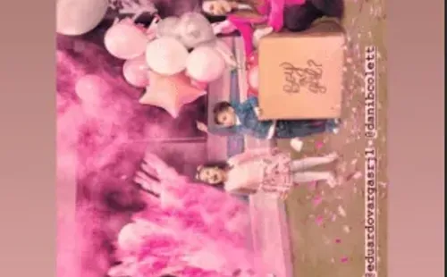 En el retrato, el delantero de Tigres está festejando junto a un entorno todo rosa y una caja, que “trae a la niña”.