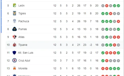 Xolos, por su parte, igualó 2 a 2 ante Atlas en un encuentro que terminó con tres expulsados para el equipo de Tijuana. Este empate lo deja a Xolos en el décimo puesto con 18 puntos.