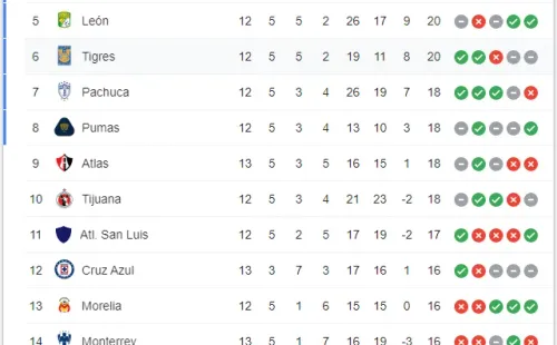 Tigres, por su parte, viene de golear 4-0 a Santos Laguna y alcanzó el sexto lugar con 20 puntos.