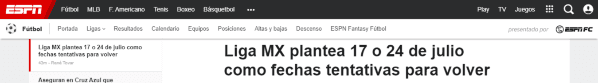 Por otra parte, otra fecha tentativa es el 24 de julio. Sí, una semana después de la que trascendió mediante Navarro y que también sería a confirmar más adelante, prestando atención a todo lo que vaya sucediendo en el territorio azteca en base al avance de esta terrible enfermedad.