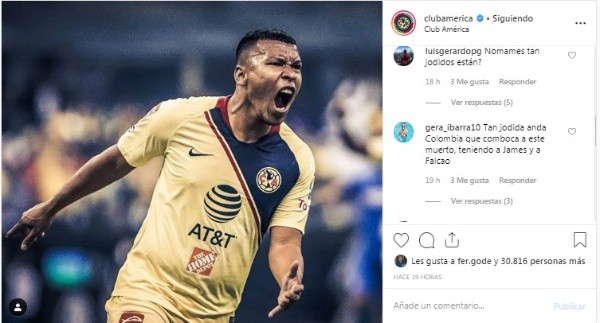 Es por eso que, en Instagram, el cuadro de Coapa felicitó ayer al atacante en las redes sociales por su convocatoria a la Selección colombiana, pero sus seguidores no se lo tomaron bien.