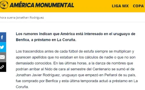 Su presente en la Máquina es formidable y desde el futbol europeo comienzan a prestar atención en sus cualidades. Lo curioso es que el uruguayo, hoy muy querido en la Noria, tuvo la oportunidad de jugar en el América.