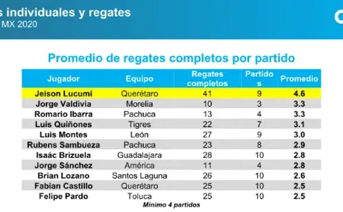 En el país Azteca hay buenos regateadores de sobra, sin embargo, el más efectivo del Clausura 2020 no es de ningún equipo denominado grande, sino de otro conjunto que jamás ganó una Liga MX: Querétaro. En su plantel supo tener a JeisonLucumí,quien,si de un premio se tratara, sería el ganador del galardón a mejor promedio.