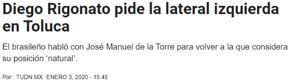 En el último Apertura, Rigonato jugó en la zona izquierda de la mitad de la cancha, puesto que Ricardo La Volpe, el ex-entrenador de losDiablos Rojosno suele utilizar laterales.