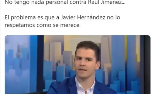 “Raúl tiene22 goles con la Selección mexicana en 78 partidos. Hernández llegó a 22 tantos con el Trien 29 juegos. Pero como hay que pegarle, decirle ‘youtuber’, distraído, que se pinta el pelo, que se acabó su carrera, que se regrese a la Liga MX… Por cierto, Jiménez, te sigo buscando para platicar uno a uno”, fueron las contundentes palabras del periodista de ‘ESPN’.
