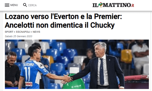 Según el medio ILMattino, Ancelotti quiere volver a tener en sus filas a Lozano y ya le pidió a la directiva del Everton, su actual equipo, la contratación del futbolista, por el que Napoli desembolsó casi 40 millones de euros.