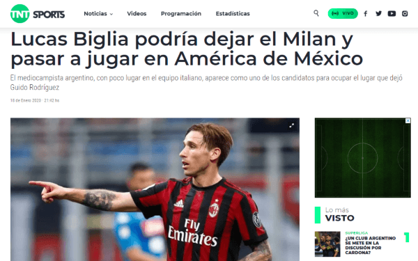El mediocampista del Milan Lucas Biglia podría poner fin a su ciclo de 13 temporadas en el fútbol europeo, aunque no para regresar a Argentina, su país, sino al fútbol mexicano.