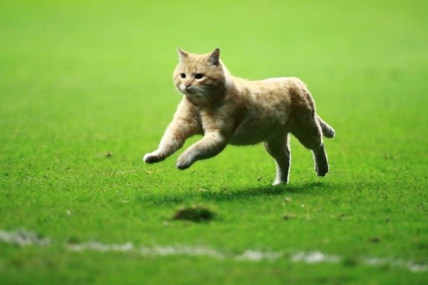Este gatito no fue bautizado como otros animales que interrumpen partidos, pero entró a la cancha del Estadio Hidalgo para frenar un partido entre Pachuca y Jaguares, en el Clausura 2017. Después caminó con toda tranquilidad por el césped y abandonó el terreno de juego.