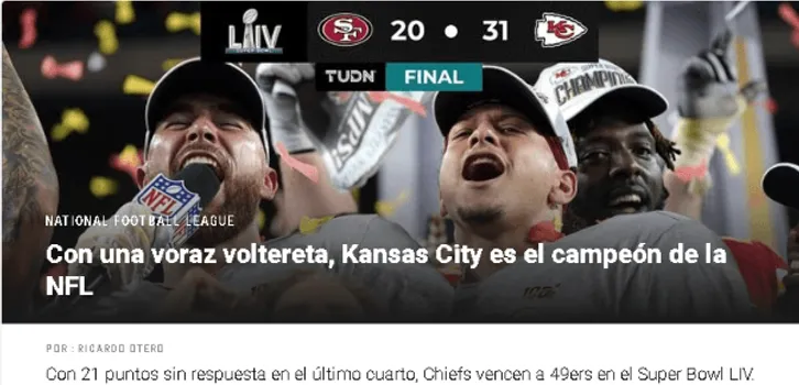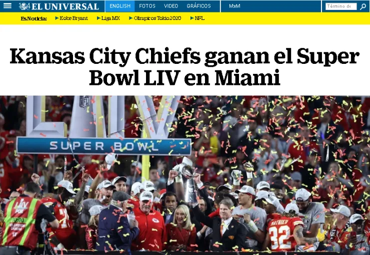 Además, la Final del Súper Bowl en la que Kansas City Chiefs derrotó 31-20 a San Francisco 49ers acaparó la atención por tratarse del máximo evento del fútbol americano, que congrega a decenas de miles de espectadores en el mismo lugar y a cientos de millones de espectadores televisivos en todo el mundo.