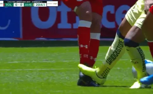 Roger Martínez le hizo un duro planchazo a Fernando Tobio, del Toluca, en una de las primeras polémicas del duelo a los 20 minutos del primer tiempo.