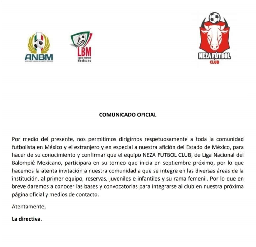OFICIAL. @SomosBalompie anuncia que Neza FC participará en la nueva liga.