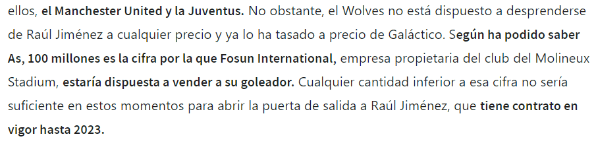 Jiménez, que registra un total de 14 goles de 30 partidos disputados en la última temporada, tiene contrato con Wolves hasta junio de 2023, donde permanecería ligado por los próximos años si sus pretendientes no abonan el monto establecido.