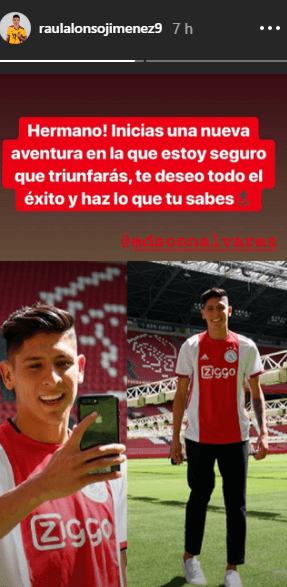 Raúl Jiménez, compañero del Machín en la Selección de México, se mostró contento por el salto que dio el futbolista de 21 años y le dedicó una palabras a través de una historia de Instagram.