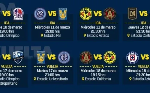 El América se enfrentará al Atlanta United el miércoles 11 de marzo a las 21:30 en el Estadio Azteca. La vuelta será el miércoles 18 a las 19:15.
