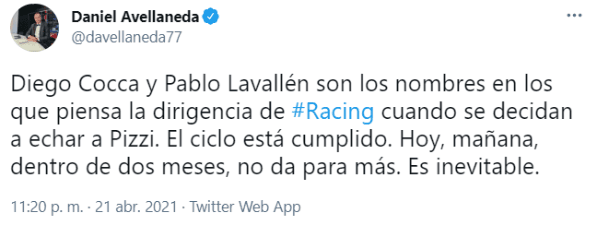 Según información del periodista Daniel Avellaneda, del Diario Clarín de Argentina, también brindada por SanCadilla en México, el Racing Club de Avellaneda tendría a Diego Cocca como una de las dos opciones principales para ser el nuevo director técnico.