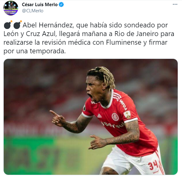 De acuerdo al periodista César Luis Merlo, Abel Hernández arriba estemiércoles a la ciudad de Río de Janeiro para convertirse en nuevo refuerzo de Fluminense. El conjunto Tricolor debe afrontar la próxima edición de la Copa Libertadores 2021, y tenía como prioridad el reforzar el ataque con elementos de jerarquía.