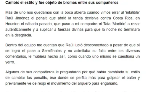 Nos queríamos morir. Raúl Jiménez falló su tiro penal en la definición ante Costa Rica por la Copa Oro. Hubo mucha tristeza.