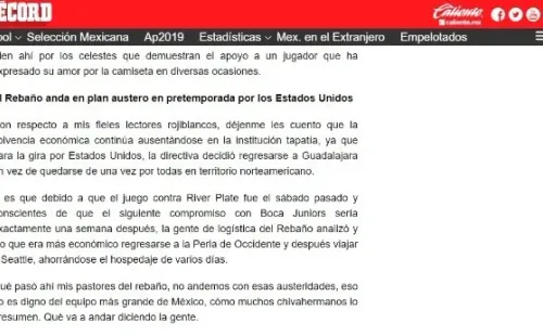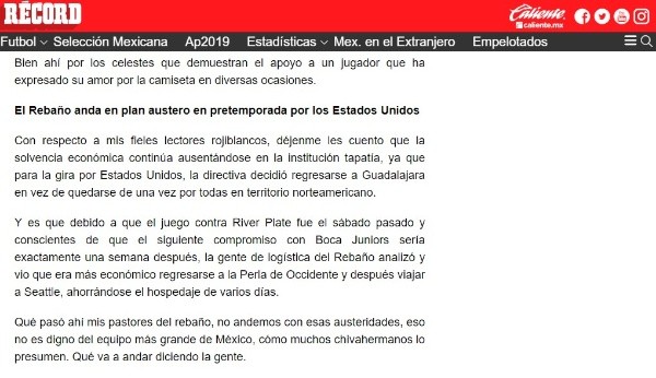 Y según informó el Francotirador de Récord, el Rebaño regresó a Guadalajara por un “plan austero” de parte del club.