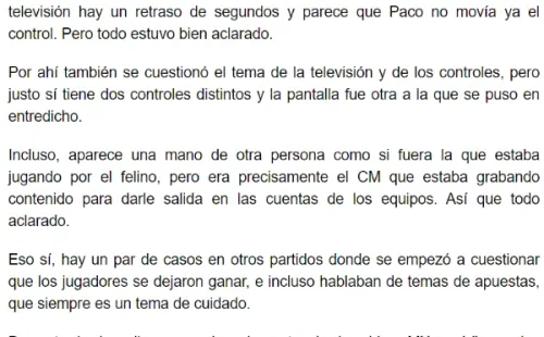 “El equipo que funge como local en el partido es el que recibe al técnico de la televisora que transmite. Dos horas antes llegan a la casa del jugador en cuestión, conectan un ancho de banda para que no batalle con la conexión, también un aparato especial a la consola, para que no traben los partidos”, continuó.